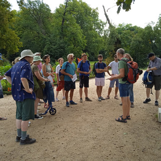 Am Fr. 30.9. besuchten 15 KollegInnen den Park Sanssouci. Auf der 2½-stündigen Führung erläuterte die künftige Ausbildungsleiterin Daniela Kuhnert Inhalt und Organisation der Berufsausbildung des spsg-Nachwuchses. Zudem erklärte der ehemalige Fachbereichsleiter Ralf Kreutz vor Ort die veränderte gärtnerische Praxis im Klimawandel. Schwerpunkte waren der Wasserhaushalt sowie die Pflanzung und Pflege einer hitze- und dürreempfindlichen Vegetation im denkmalgeschützten Park. Zu beiden Aspekten finden sich wertvolle Informationen an den 30 Standorten der aktuellen Open-Air-Ausstellung – nur noch bis 31.10.2024. Sehr sehenswert!